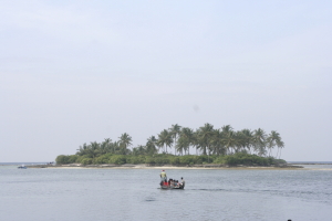 As before, the lagoon water was clear, shallow, and still. After getting the girls into the water for a bit, I got hold of a snorkeling set and went off on a long circuit. Snorkeling was easy once I had figured out how to keep the air pipe upright. The goggles were wonderful, again, though here there wasn't as much to see. In places, the water was too shallow to swim, but I hated walking through it because the floor was full of poky, squishy, icky things that I didn't want to touch. Sea cucumbers littered the area and they look like cucumbers that have gone rotten and squishy, or alternatively, like big, dark, sticky lumps of turd. I actually stepped on one and it was... Ewwwwwww... Gross! Our time on the little island ended all too quickly and we had to traipse back over what looked like volcanic rock and pebbles, get into horribly overcrowded boats that scraped along the bottom of the sea, with the water literally lapping at the edge of the boat, until we had covered almost half the distance back to Kalpeni, where the water was deep enough to risk starting the engine. Nobody was afraid of drowning if the boat capsized: the chap pushing the boat was not even in up to his waist. Still, if the girls and/or the camera had fallen in, it would have been a nuisance (or a disaster). Lunch followed, and so did another folk dance and another sightseeing trip. We had seen a little more of Kalpeni than we did of Kavaratti, because of the long, winding drive from the jetty to the beach. We had caught sight of a police station, a post office, a government press, some houses and yards, some chickens and hens. Again, there was not much activity catering to tourists. Perhaps we should have gone on the sightseeing tour, but the twins were tired and cranky. So we took them and sat down under a palm tree in a breezy, shady spot, and in a few minutes they were both sound asleep. The ship had promised to return by 5.30, and by 4, it was just visible, an indistinct white blur on the horizon. Apparently, the sea was quite rough and winds were high, so the ship had sent word to get people back on board in double quick time. We heard that normally the ship would come around to a wharf on the other side of the island, just 5 minutes' boat ride away, but that it had been forced to come around to this gate -- which was usually used only during the monsoon -- due to the rough seas and high winds. The girls awoke just as it was time to get going. The ride back was a little rough, but not anything spectacular and we were home and dry by a little after 5. We spent the evening getting clean and keeping the girls entertained. The ship was rolling quite dramatically now, making it difficult to walk straight. The kids were still trying their usual antics, with results that were sometimes hilarious, sometimes almost tragic. We went out on to the deck (with a great deal of reluctance on Amit's part) and found that the swaying wasn't half as noticeable in the open air. In addition, we were treated to occasional bolts of lightning. It had been a tiring day, and by 9.30 we were all tucked up and out like so many lights. |