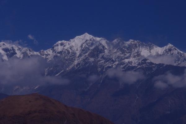 Relief was shortlived. We had to pack, eat and move on. By now it was 2.30 or so, and, again, apart from the donkeys we were the last to leave. As we went down, our spirits rose and energy levels revived. From Bedini Bugiyal to Baguabasha had taken about 4-5 hours, so we confidently predicted that the descent should take no more than 3. By 5.30 we would be there, we said. At 5.30 we were at the pass where the path crosses over from the Pathar Nachani side of the hill to the Bedini Bugiyal side. Yesterday, on the way up, the peaks had been shrouded by cloud when Amit and I got to the pass, but this evening the view was grand. The clouds that always seem to gather in the early afternoon had cleared up and it was just about time for the sun to set. The light on Trisul 1, 2, and 3 was sublime. We stopped for photographs and then continued towards camp, watching the sun go down behind the hills far in front. It would be dark soon, and cold, for we were walking in day time clothes, which are completely different from the heavy jackets needed in the evenings. But at least we could see the camp now, a few colourful specks far, far away. Line of sight is always a comforting feeling, though unreliable. As someone pointed out, you could see the moon too, but that didn't mean that you could walk to it. Torches. There were four of us and only one of them. By 6, we found its battery was running out. Batteries. Boudi had a pair, but try as we might we couldn't get the tightly sealed packet open. Scissors. The Swiss army knife Amit and I had bought just before we left for the trek was pulled out of the small backpack that he had been so reluctant to carry. In the last shreds of daylight, the torch was given new batteries and, with our path now more effectively lit, we trudged on. It was no fun walking in the dark. Amit, in the lead, was trying to set a good pace and I was doing my best to trot along behind him, but behind me, with noticeably less illumination, the pace slowed down. Nobody wanted to put a wrong foot and either twist an ankle or find themselves rolling down the hillside on the right. Had the moon been up, it would have cast a splendid silvery light on the setting and hopefully added a flavour of romance, but the moon was dallying behind the hills and shyly showed its face only much later, when we were safely at camp. Meanwhile the Milky Way glowed radiantly above, not at all concerned with this small party of trekkers plodding on along a meandering path going nowhere in particular. We kept expecting a search and rescue team to be sent up for us, with torches and perhaps hot water and snacks. But nobody came. Somebody stood at the foot of the hill and flashed a torch at us to assure us that they were there. While this was somewhat reasssuring, it was of not much help to us as we stumbled along in single file, thinking how far away that blinking torch seemed. It was 6.45 when finally and suddenly Anil, the second in command of the kitchen, materialised on the path just ahead of us. Though he had just one torch, 2 torches among 5 was certainly an improvement over one among four. Our expedition proceeded speedily to camp, arriving at 7.30 to a hero's welcome (though, in my private opinion, we had done nothing to deserve it). |