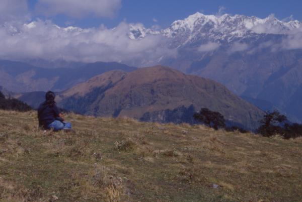 Yesterday having been a tiring day for many, this was designated a day of rest. Originally, we had planned to go down to Wan, but a yearning to see the views from Ali Bugiyal led me to suggest to Amit that a rest day at Bedini Bugiyal would be a good idea. This idea was gradually and tactfully floated through other members of the group till it finally became a decision. Having proclaimed that we were too tired to go down to Wan today due to yesterday's late evening walk, we set off for Ali Bugiyal this morning shortly after 9.00.